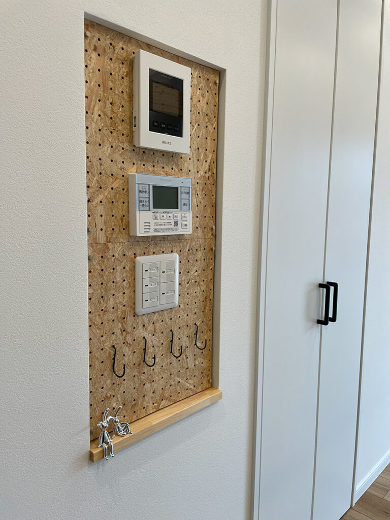 ニッチ・・・インターホン、リモコン、コンセントをニッチにまとめたことで、出っ張りがなくスッキリしまし